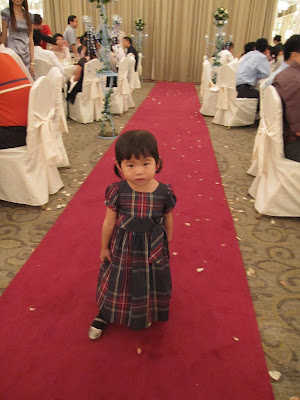 I don't really like weddings in the first place.. Hungry tummy, long nights, food is served at long interval.. But this time round, it's Yvonne Ah Yi's wedding! And I'm beginning to love it. She is so pretty.. I've never seen such a pretty bride before.. She look like an angel from heaven. Her wedding is perfect, just like her.. I wanna be a bride too... Uncle Meng is a little weird though... hee hee.. That's what Mummy told me but I can see he's a nice guy. I wish them a blissful marriage and may they give me a playmate soon. haaa..